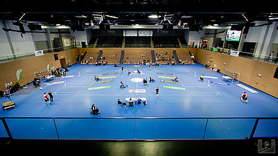 Schon viele Wochen vorher waren die Mitglieder der Abteilung E-Rolli-Fußball des Sportvereins Motor Mickten-Dresden e.V. mit den Vorbereitungen für einen reibungslosen Ablauf beschäftigt. Gespielt werden sollte diesmal auf dem Center Court der BallsportARENA. Dazu musste das Spielfeld schon am Vorabend vorbereitet und der Strafraum, die sogenannte Box, die Ecken, der 3,5 Meter Punkt und die Torpfostenmarkierung mit Klebeband regelkonform abgeklebt werden. Außerdem mussten die Torpfosten gesetzt und jedem Team ein Platz in der großzügigen Sporthalle mit Teppichboden ausgekleidet werden, damit die Hilfsmittel und Sportrollstühle sowie benötigtes Werkzeug benutzt werden konnten, ohne den empfindlichen Glasboden zu beschädigen. Auch an das leibliche Wohl wurde gedacht. So gab es zusätzlich zum Restaurant „Ballance“ noch einen selbstorganisierten Snackpoint mit allerlei selbstzubereiteten Leckereien, dessen Erlös in die Mannschaftskasse floss.