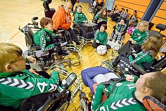 Am Morgen traf sich unsere Mannschaft am Verband der Körperbehinderten der Stadt Dresden. Nachdem 7 Uhr langsam alle eintrafen luden wir die Spieler und das dazu gehörige Gepäck in die 2 gemieteten Busse und in ein privates Auto ein. Insgesamt fuhren 9 Spieler + Assistenten, Eltern, unsere Trainerin, ein Physiotherapeut und 2 Techniker mit. Verspätet fuhren wir ca. 9 Uhr ab.