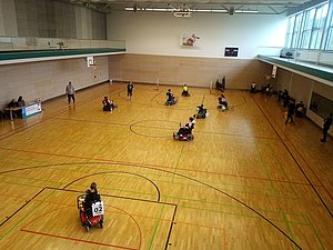 Der Spielplan sah vor, dass die Spiele in zwei Halbzeiten, mit je 10 Minuten, ausgetragen wurden. Das ist nicht viel Zeit, wenn man regulär 15 bzw. 20 Minuten je Halbzeit spielt. Spielfehler konnten nur schwer wieder ausgeglichen werden und so kam es, dass wir beide Spiele gegen die Knights mit 0:3 und 1:3 verloren. Gegen die Bösen Frösche spielten wir langsam und immer mit der Rücksicht, dass wir auch mal angefangen haben. Das angenehme an so einem Turnier ist, dass man ganz neuen Teams eine wunderbare Plattform ermöglichen kann, Spielerfahrung zu sammeln, Turnierluft zu schnuppern und das Spiel außerhalb seines eigenen Wirkungskreises zu erlernen. Der Endstand jeweils 3:0 und 2:0 für die Power Lions. Die Barmstedt Knights besiegten die Bösen Frösche mit 5:0 und 1:8. Die Bösen Frösche belegten den 3. Platz, die Power Lions den 2. Platz und die Barmstedt Knights den 1. Platz. Wir gratulieren allen Siegern, denn auch im Boccia und Tischtennis wurde um Pokale und Platzierungen gekämpft.